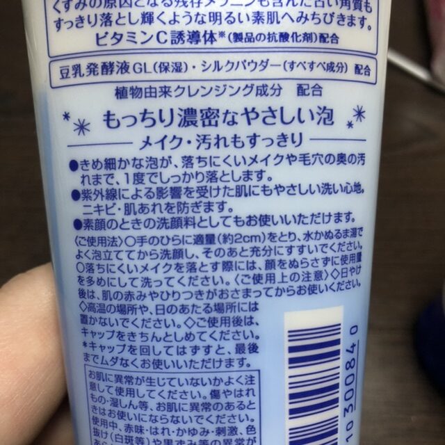 洗顔フォームの裏面(使用方法)をよく読んでみると